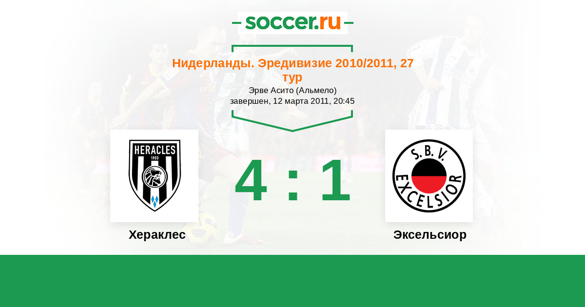 Нидерланды. Эредивизи 22.10.2011 Эксельсиор Логотип футбольный клуб Эксельсиор (Роттердам) 0:2 Логотип футбольный клуб Хераклес (Алмело) Хераклес