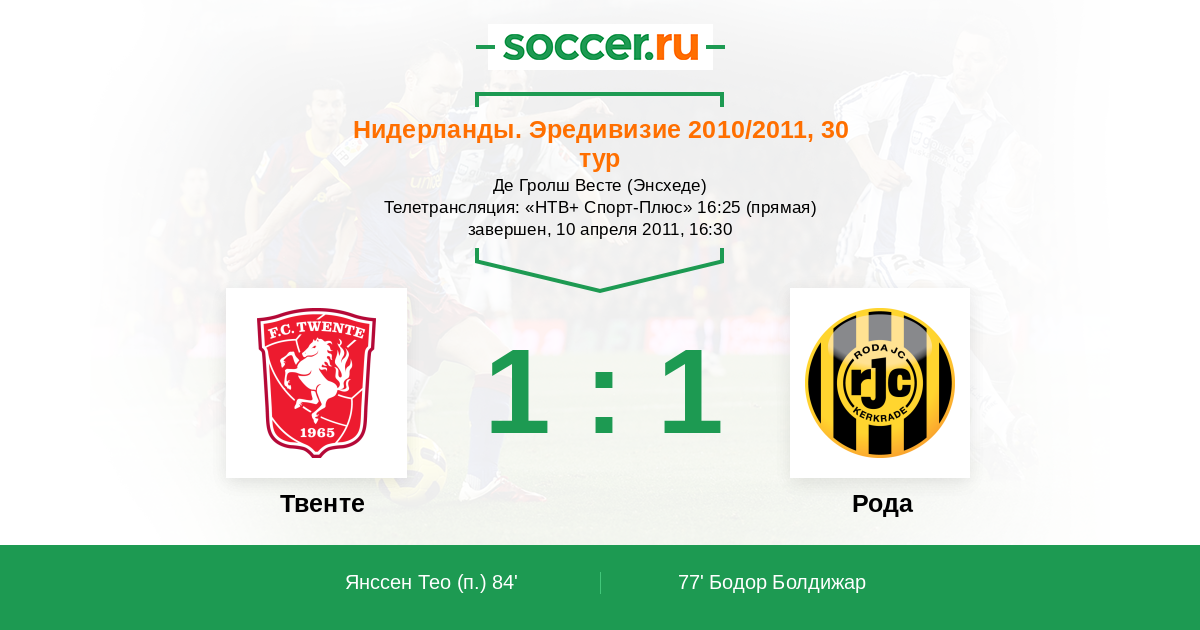 Протокол матча Твенте против Рода