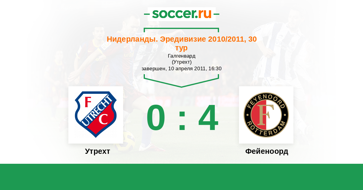 Нидерланды. Эредивизи 16.04.2017 Фейеноорд Логотип футбольный клуб Фейеноорд (Роттердам) 2:0 Логотип футбольный клуб Утрехт Утрехт