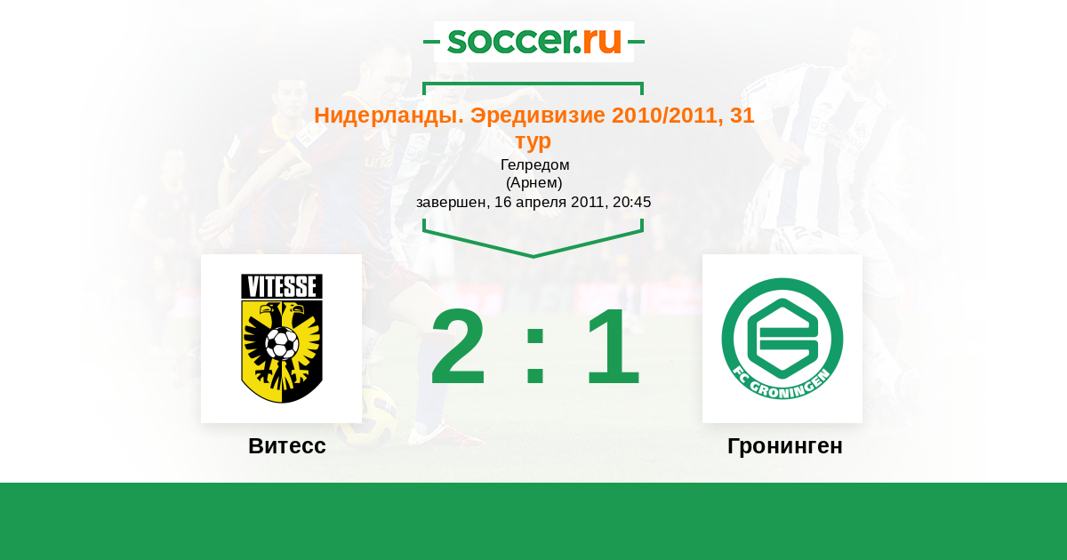 Нидерланды. Эредивизи 03.04.2010 Витесс Логотип футбольный клуб Витесс (Арнем) 3:0 Логотип футбольный клуб Гронинген Гронинген