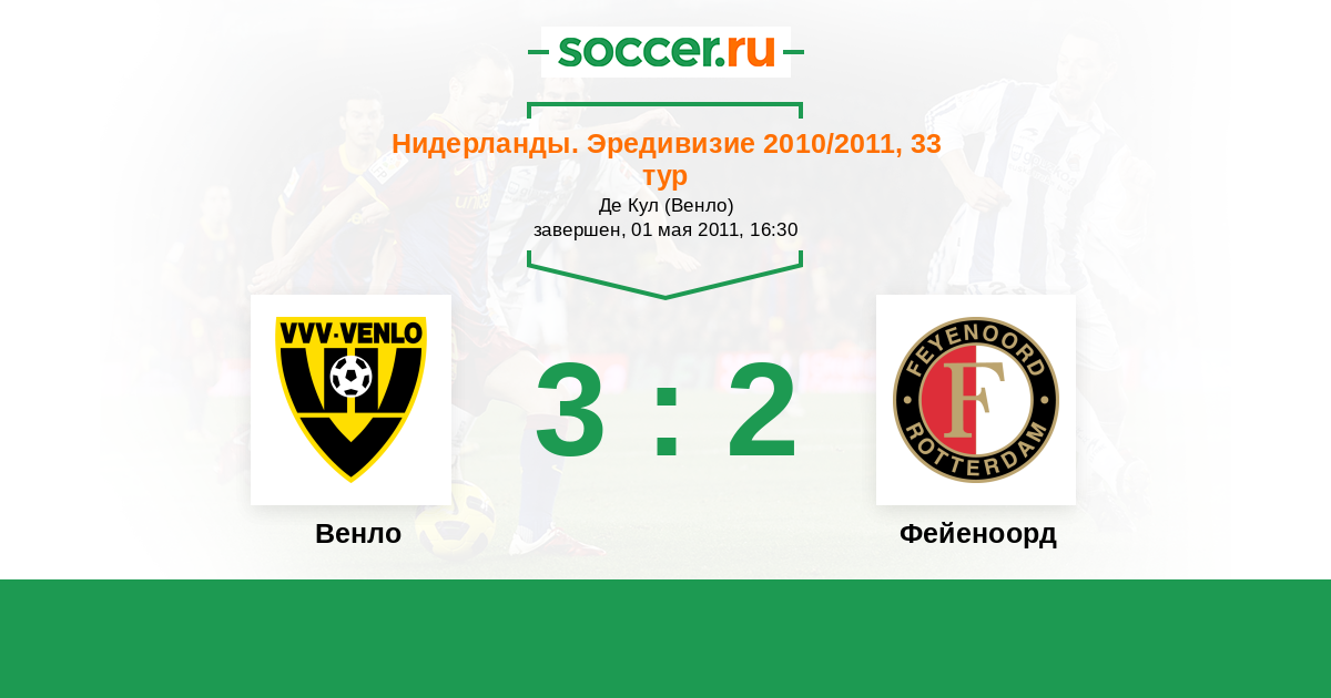 Нидерланды. Эредивизи 27.10.2010 Фейеноорд Логотип футбольный клуб Фейеноорд (Роттердам) 3:0 Логотип футбольный клуб Венло Венло