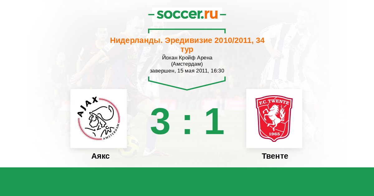 Нидерланды. Кубок 08.05.2011 Твенте Логотип футбольный клуб Твенте (Энсхеде) 2:2 Логотип футбольный клуб Аякс (Амстердам) Аякс