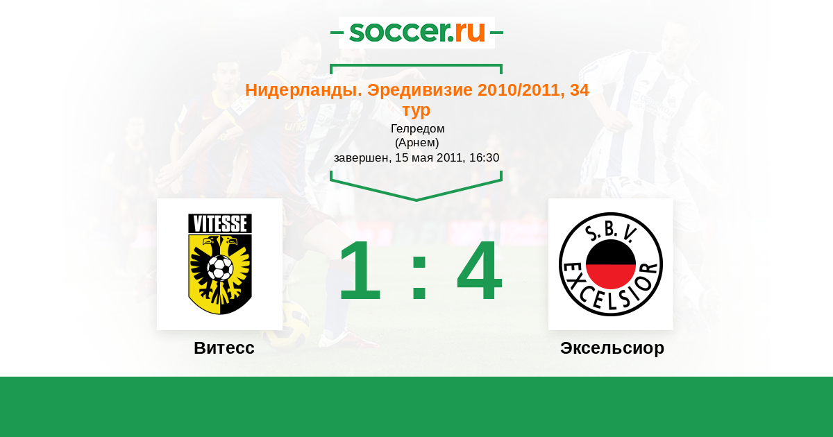 Нидерланды. Эредивизи 28.04.2012 Витесс Логотип футбольный клуб Витесс (Арнем) 3:2 Логотип футбольный клуб Эксельсиор (Роттердам) Эксельсиор