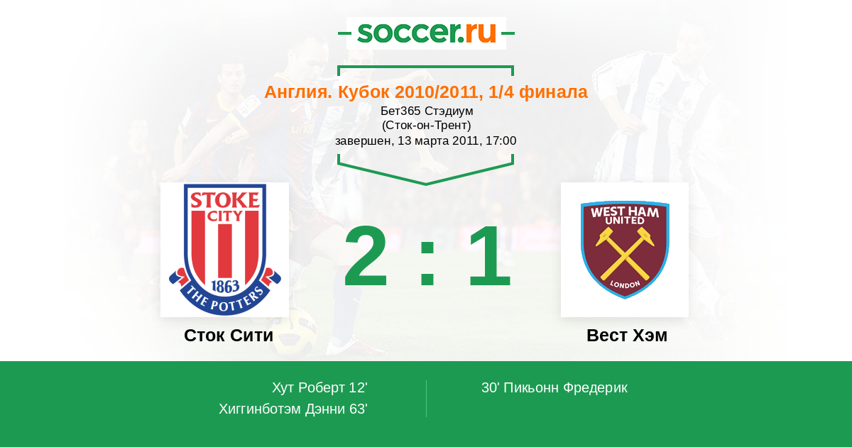 Протокол матча Сток Сити против Вест Хэм