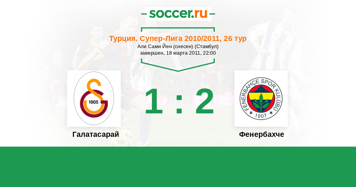 Турция. Суперлига 17.03.2012 Фенербахче Логотип футбольный клуб Фенербахче (Стамбул) 2:2 Логотип футбольный клуб Галатасарай (Стамбул) Галатасарай