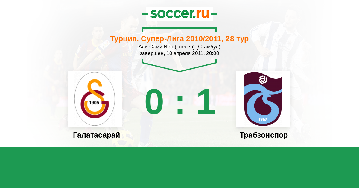 Турция. Суперлига 07.11.2010 Трабзонспор Логотип футбольный клуб Трабзонспор 2:0 Логотип футбольный клуб Галатасарай (Стамбул) Галатасарай