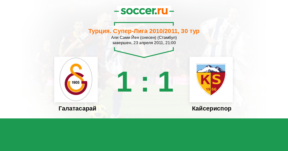 Турция. Суперлига 21.11.2010 Кайсериспор Логотип футбольный клуб Кайсериспор 0:0 Логотип футбольный клуб Галатасарай (Стамбул) Галатасарай