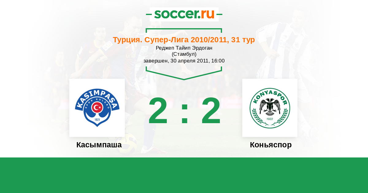 Турция. Суперлига 27.11.2010 Коньяспор Логотип футбольный клуб Коньяспор 2:2 Логотип футбольный клуб Касымпаша (Стамбул) Касымпаша