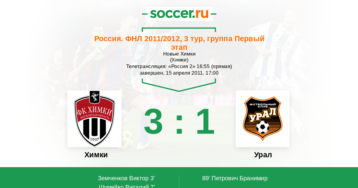 Протокол матча Химки против Урал