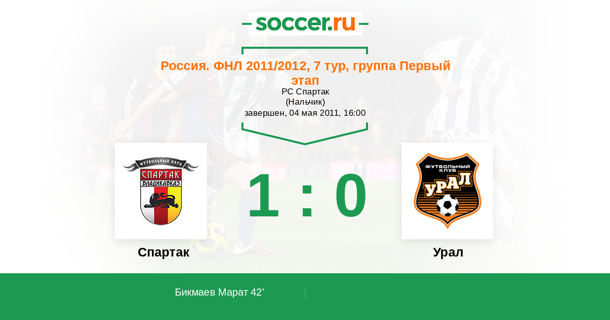 42' (1:0) Бикмаев Марат (75)