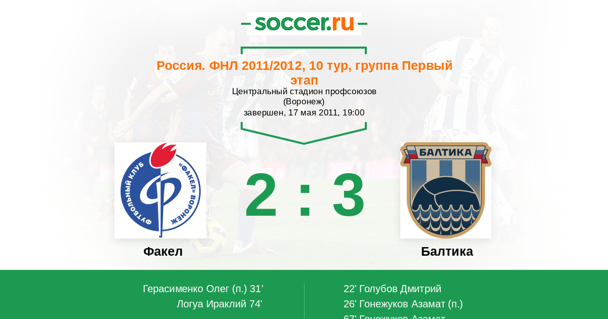 Протокол матча Факел против Балтика