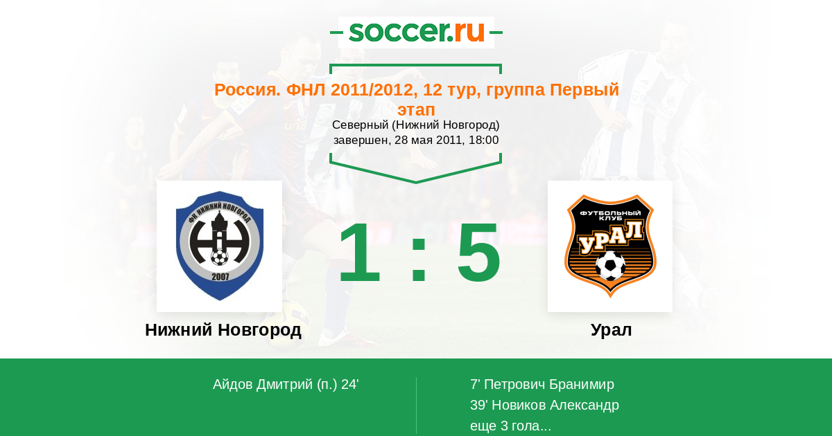 Протокол матча Нижний Новгород против Урал