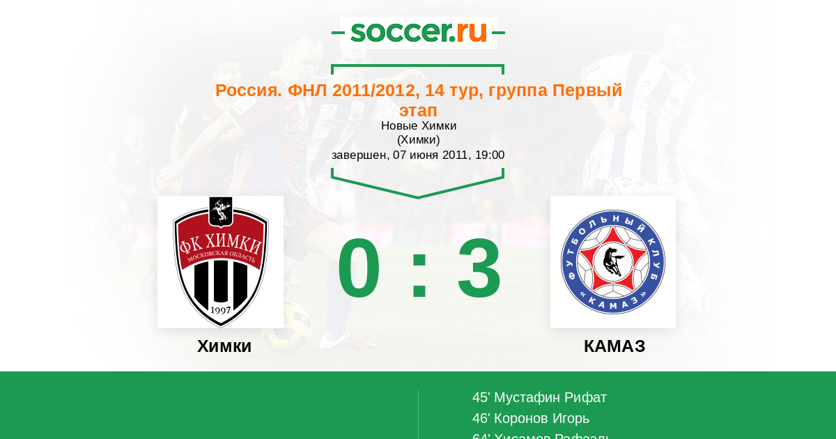 Протокол матча Химки против КАМАЗ