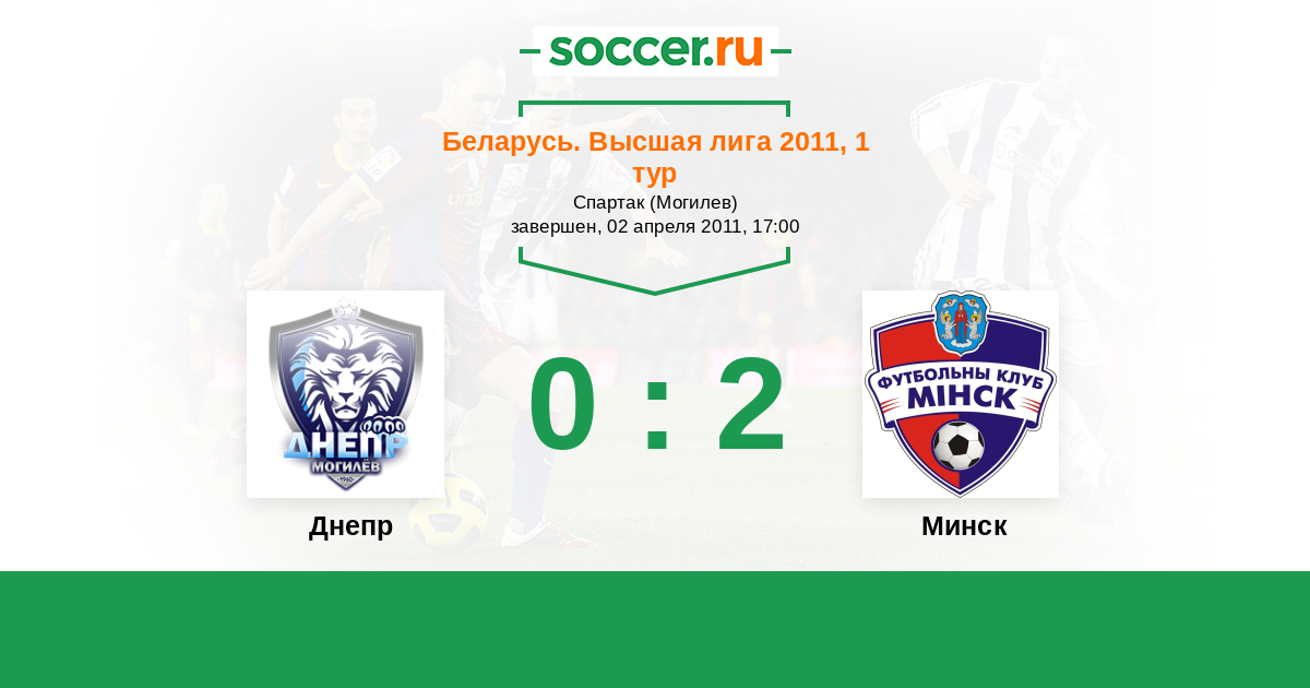 Беларусь. Высшая лига 27.05.2011 Минск Логотип футбольный клуб Минск 1:3 Логотип футбольный клуб Днепр (Могилев) Днепр