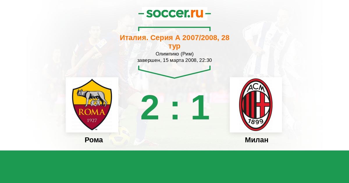 Италия. Серия А 28.10.2007 Милан Логотип футбольный клуб Милан 0:1 Логотип футбольный клуб Рома (Рим) Рома