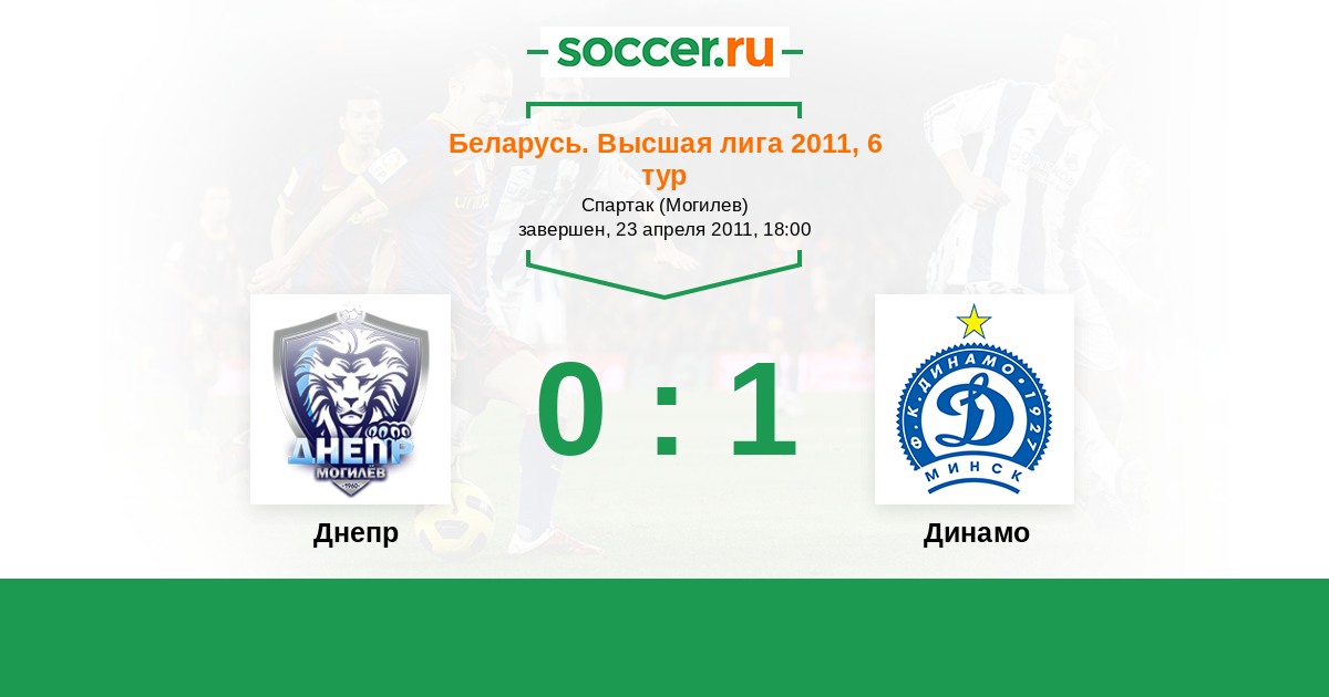 Беларусь. Высшая лига 25.09.2011 Динамо Логотип футбольный клуб Динамо (Минск) 4:1 Логотип футбольный клуб Днепр (Могилев) Днепр