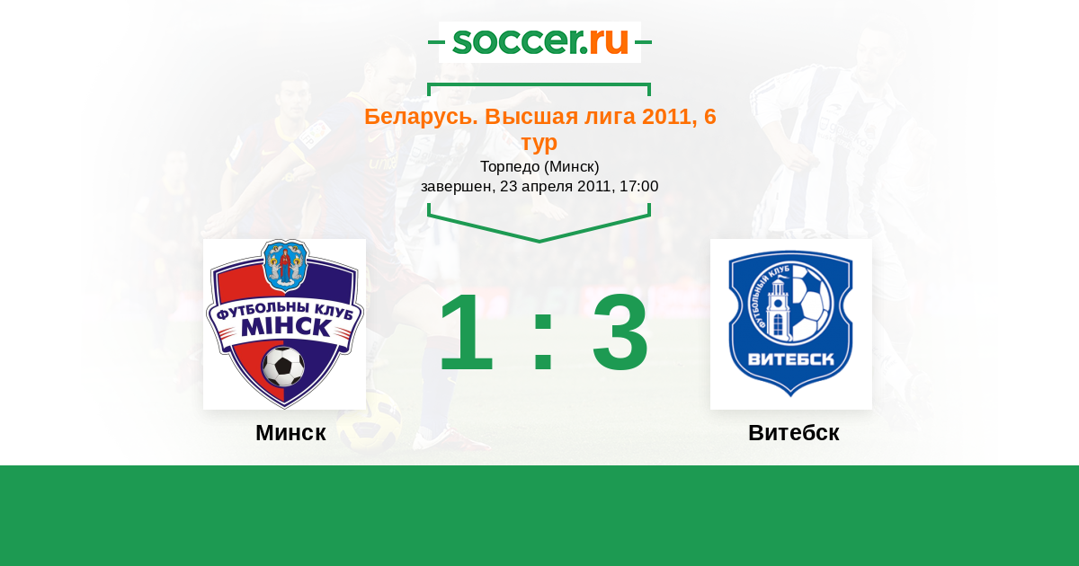 Беларусь. Высшая лига 26.04.2009 Минск Логотип футбольный клуб Минск 0:1 Логотип футбольный клуб Витебск Витебск