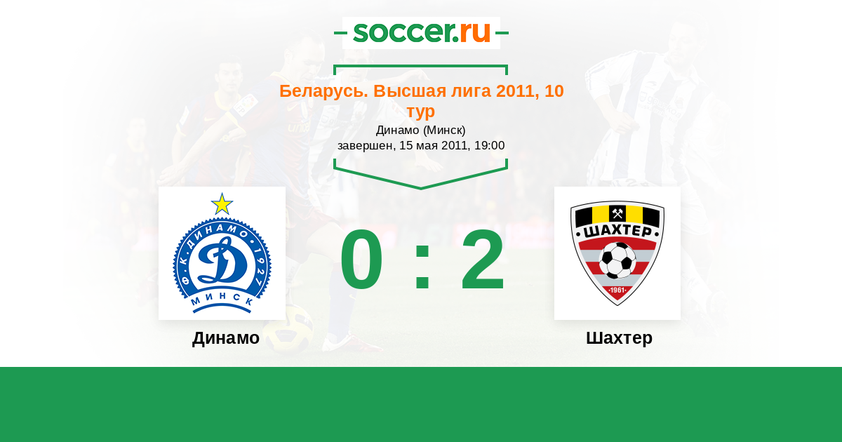 Беларусь. Высшая лига 19.09.2010 Шахтер Логотип футбольный клуб Шахтер (Солигорск) 3:0 Логотип футбольный клуб Динамо (Минск) Динамо