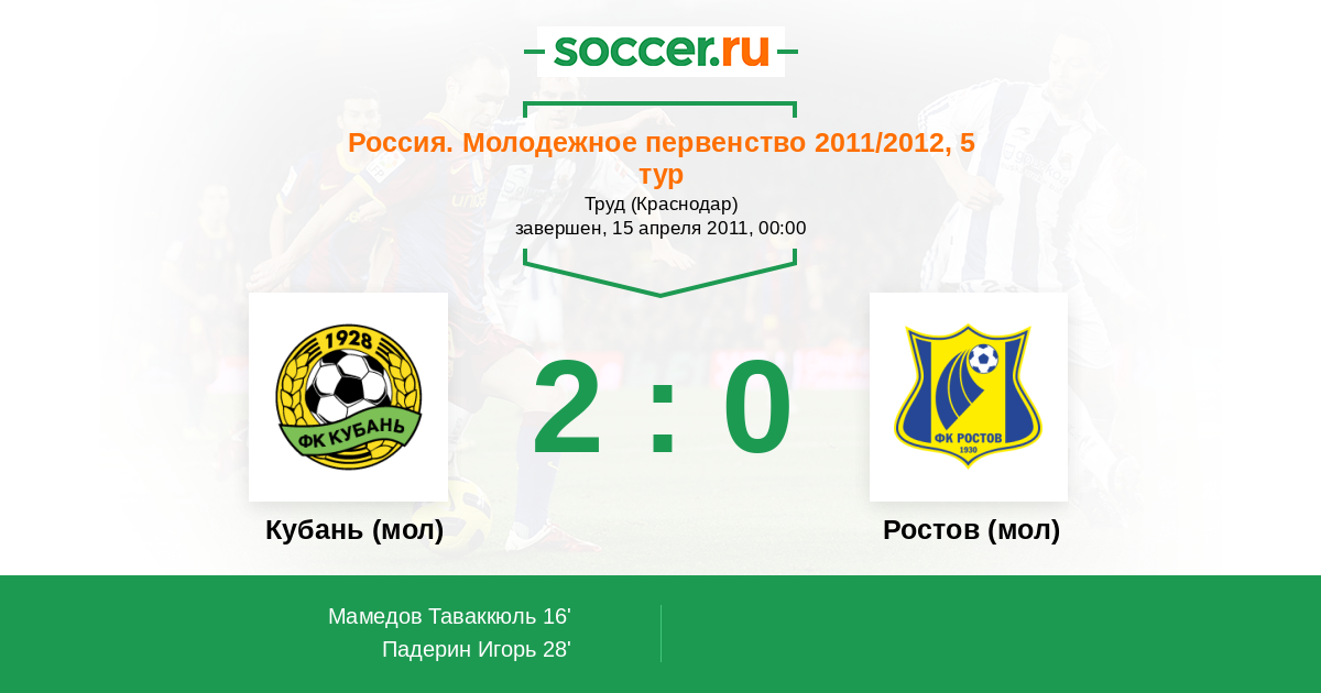 Протокол матча Кубань (мол) против Ростов (мол)