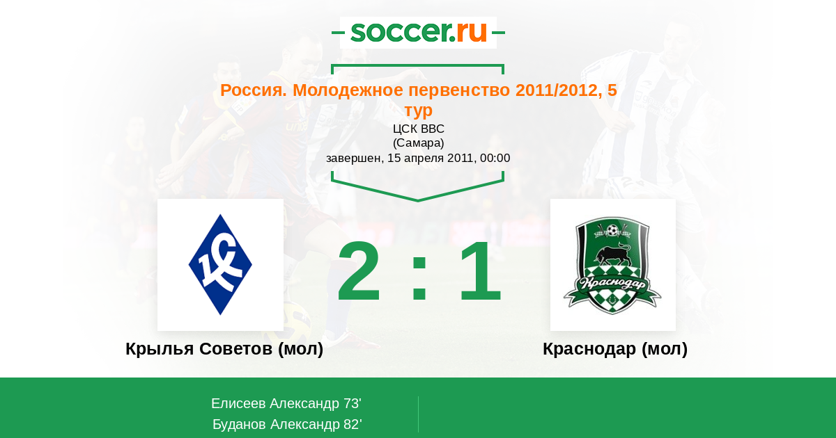 Протокол матча Крылья Советов (мол) против Краснодар (мол)