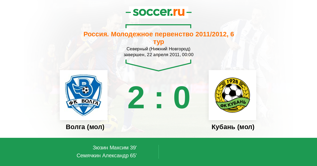 Протокол матча Волга (мол) против Кубань (мол)