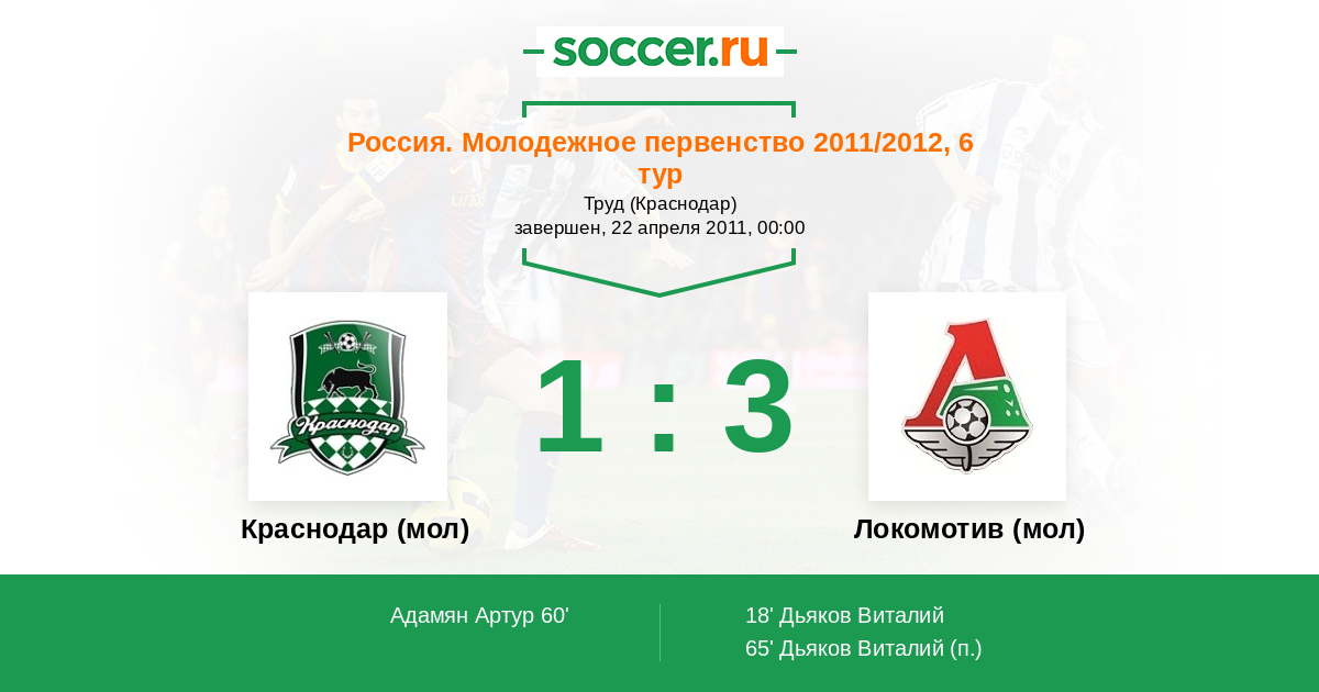 Протокол матча Краснодар (мол) против Локомотив (мол)