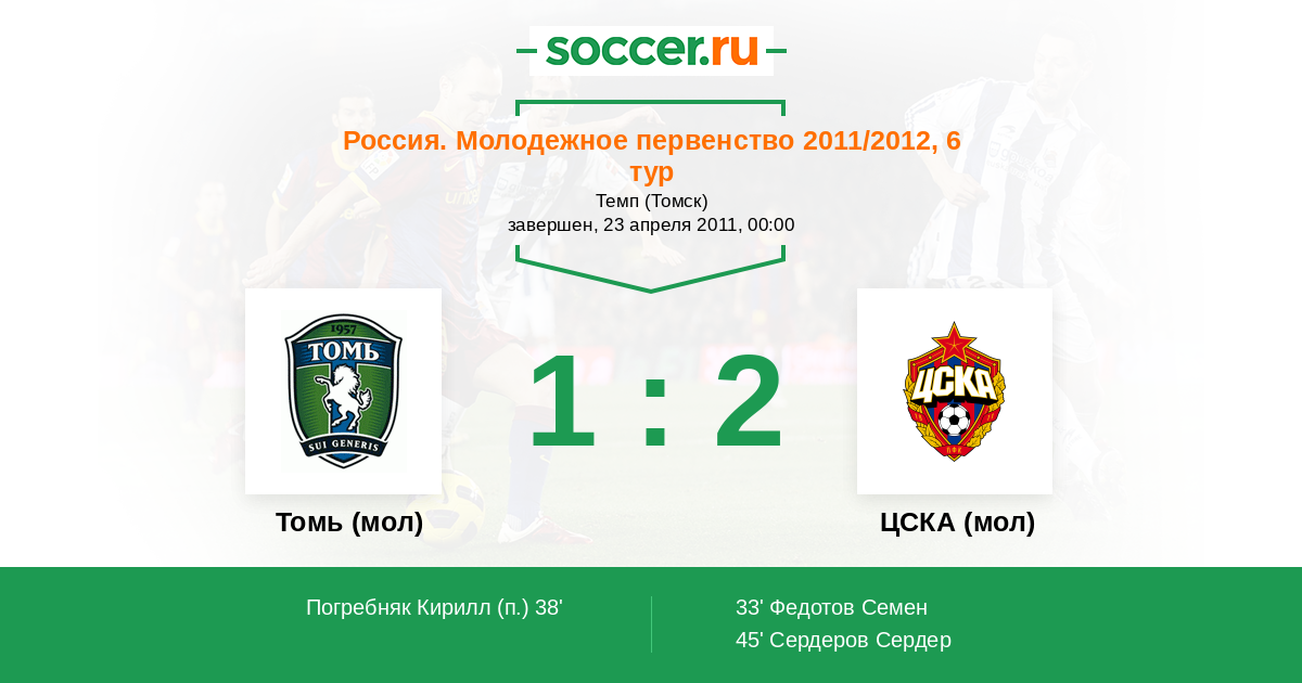 Протокол матча Томь (мол) против ЦСКА (мол)