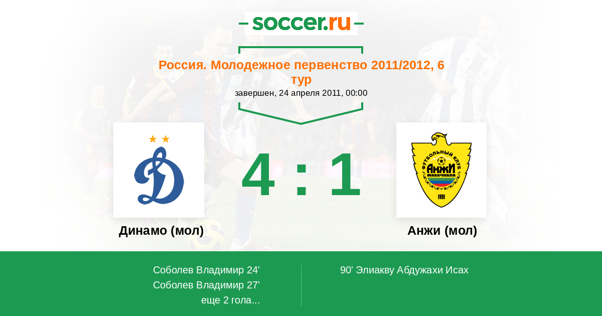 Протокол матча Динамо (мол) против Анжи (мол)