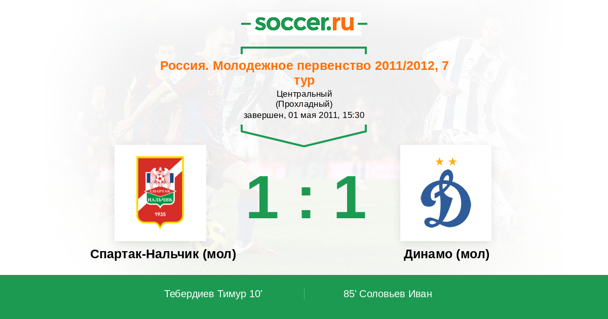 Протокол матча Спартак-Нальчик (мол) против Динамо (мол)
