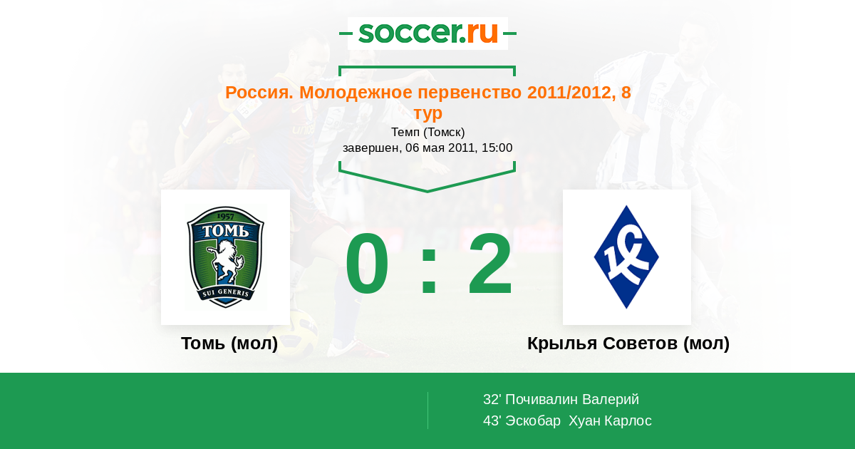 Протокол матча Томь (мол) против Крылья Советов (мол)