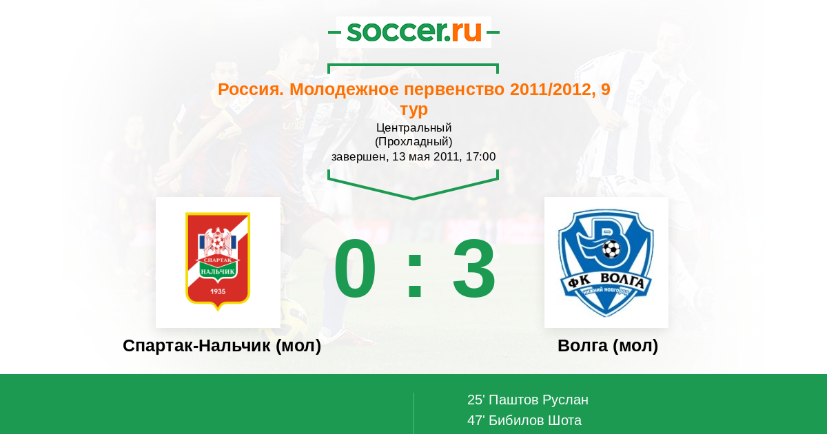 Протокол матча Спартак-Нальчик (мол) против Волга (мол)