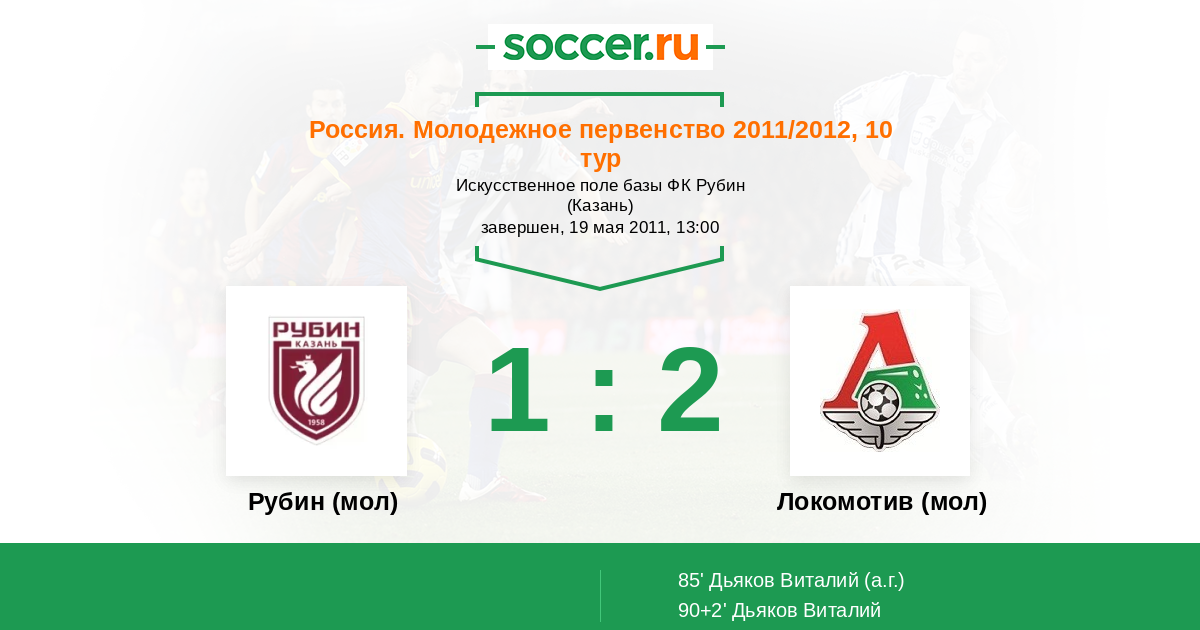 Протокол матча Рубин (мол) против Локомотив (мол)