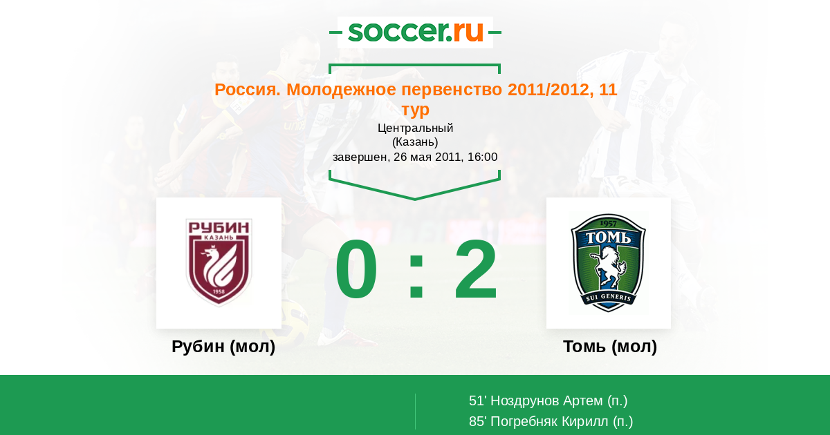 Протокол матча Рубин (мол) против Томь (мол)
