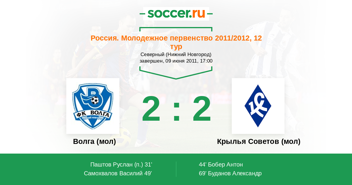 Протокол матча Волга (мол) против Крылья Советов (мол)