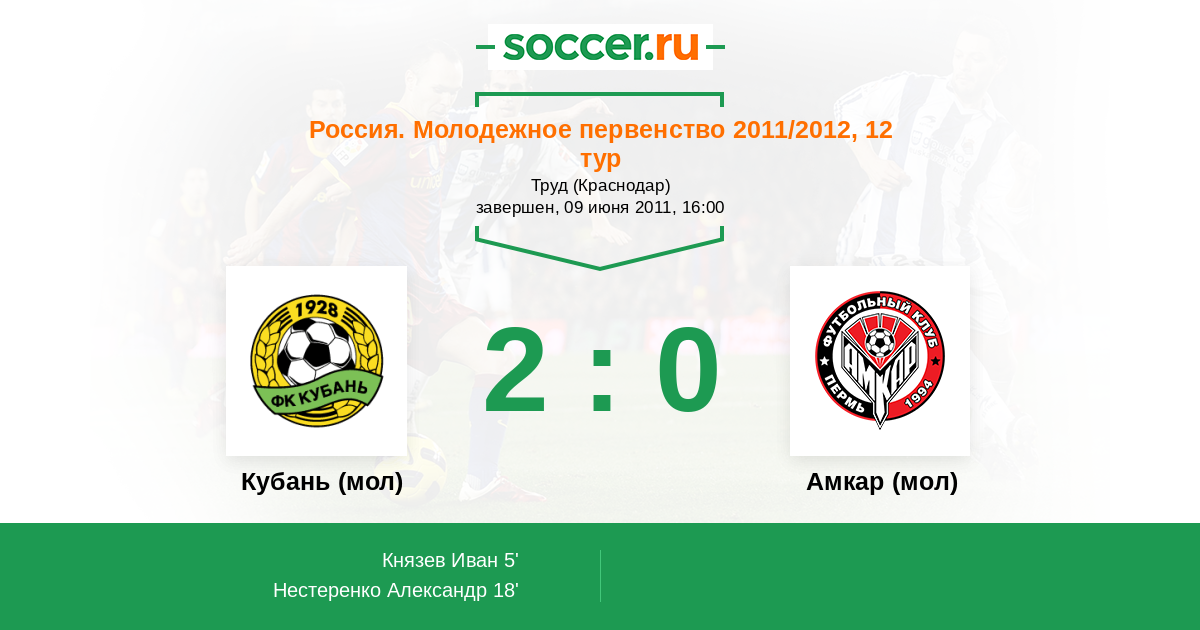 Протокол матча Кубань (мол) против Амкар (мол)