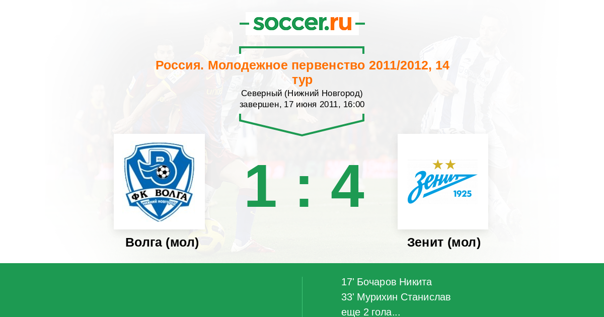 Протокол матча Волга (мол) против Зенит (мол)
