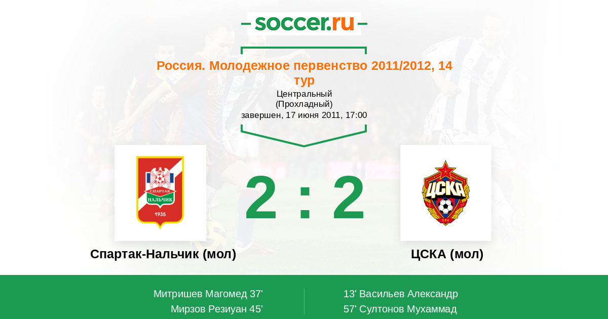 Протокол матча Спартак-Нальчик (мол) против ЦСКА (мол)