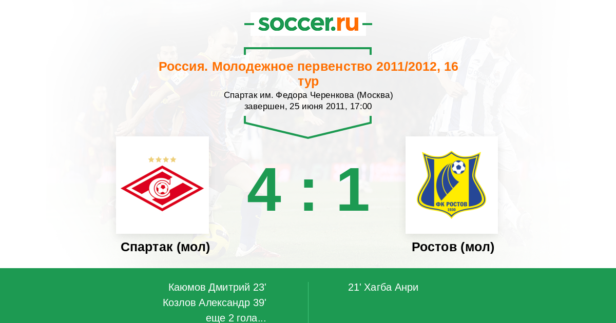 Протокол матча Спартак (мол) против Ростов (мол)