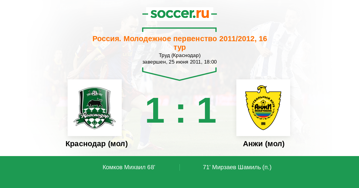 Протокол матча Краснодар (мол) против Анжи (мол)