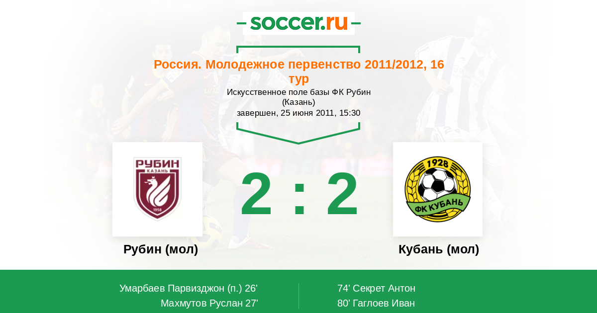 Протокол матча Рубин (мол) против Кубань (мол)