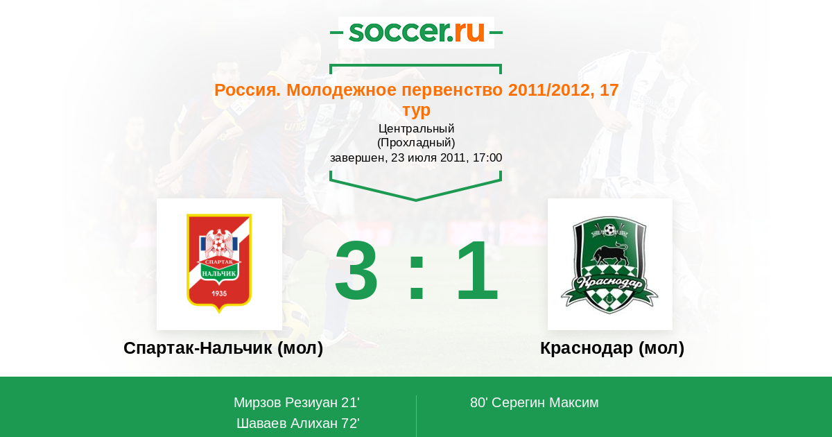 Протокол матча Спартак-Нальчик (мол) против Краснодар (мол)