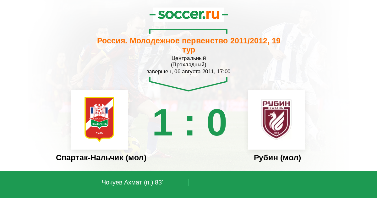 Протокол матча Спартак-Нальчик (мол) против Рубин (мол)