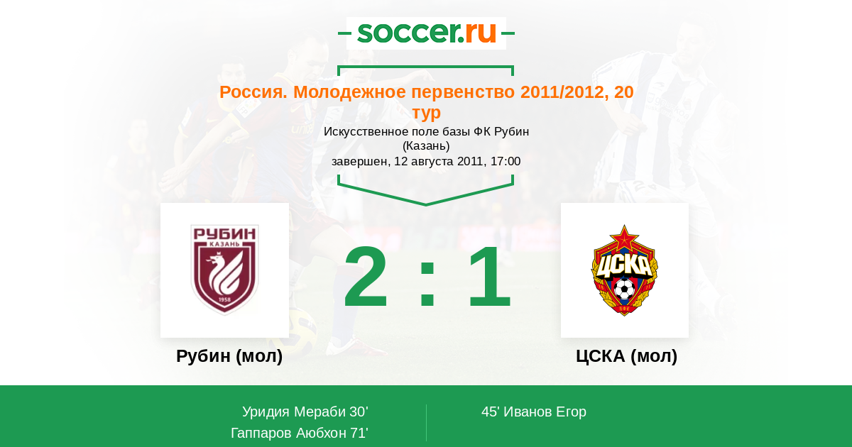 Протокол матча Рубин (мол) против ЦСКА (мол)