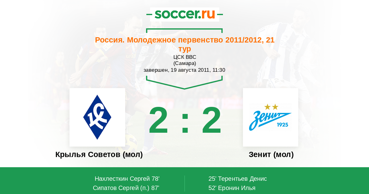 Протокол матча Крылья Советов (мол) против Зенит (мол)