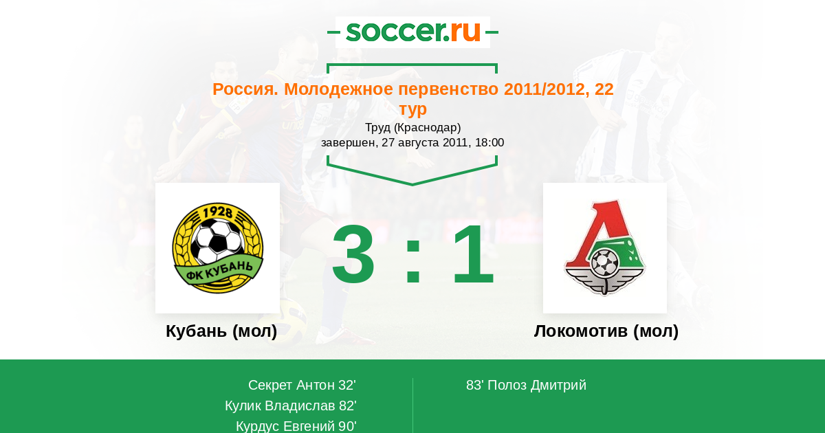Протокол матча Кубань (мол) против Локомотив (мол)