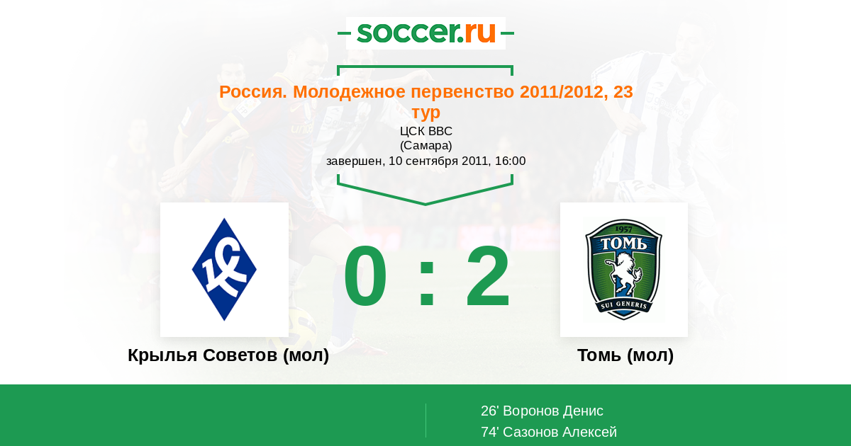 Протокол матча Крылья Советов (мол) против Томь (мол)