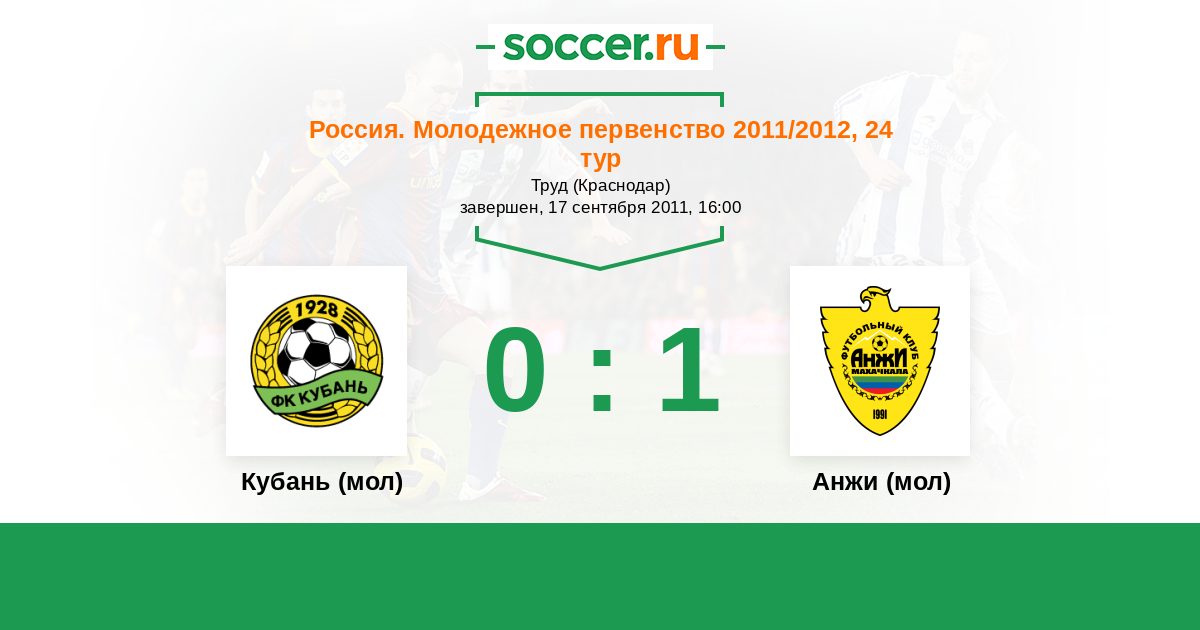 Протокол матча Кубань (мол) против Анжи (мол)