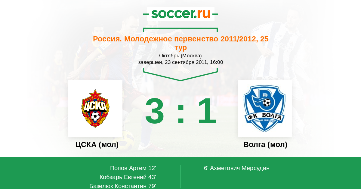 Протокол матча ЦСКА (мол) против Волга (мол)