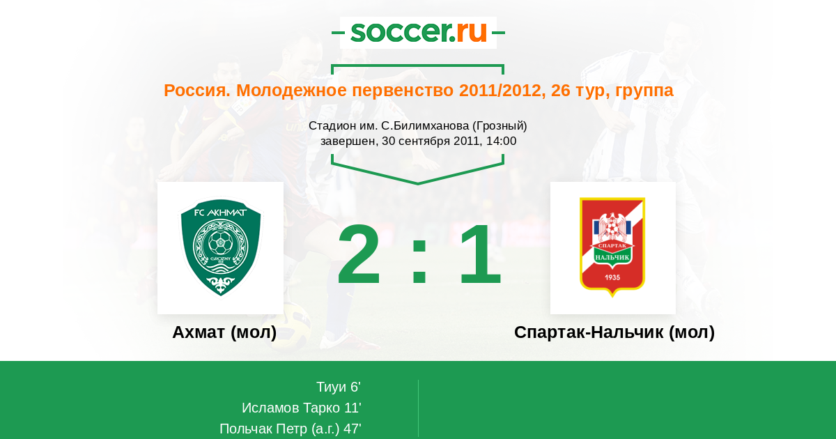 Протокол матча Терек (мол) против Спартак-Нальчик (мол)
