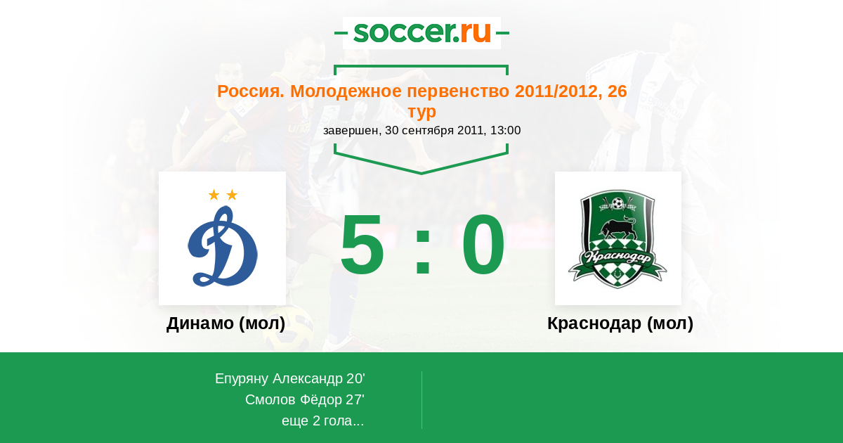 Протокол матча Динамо (мол) против Краснодар (мол)